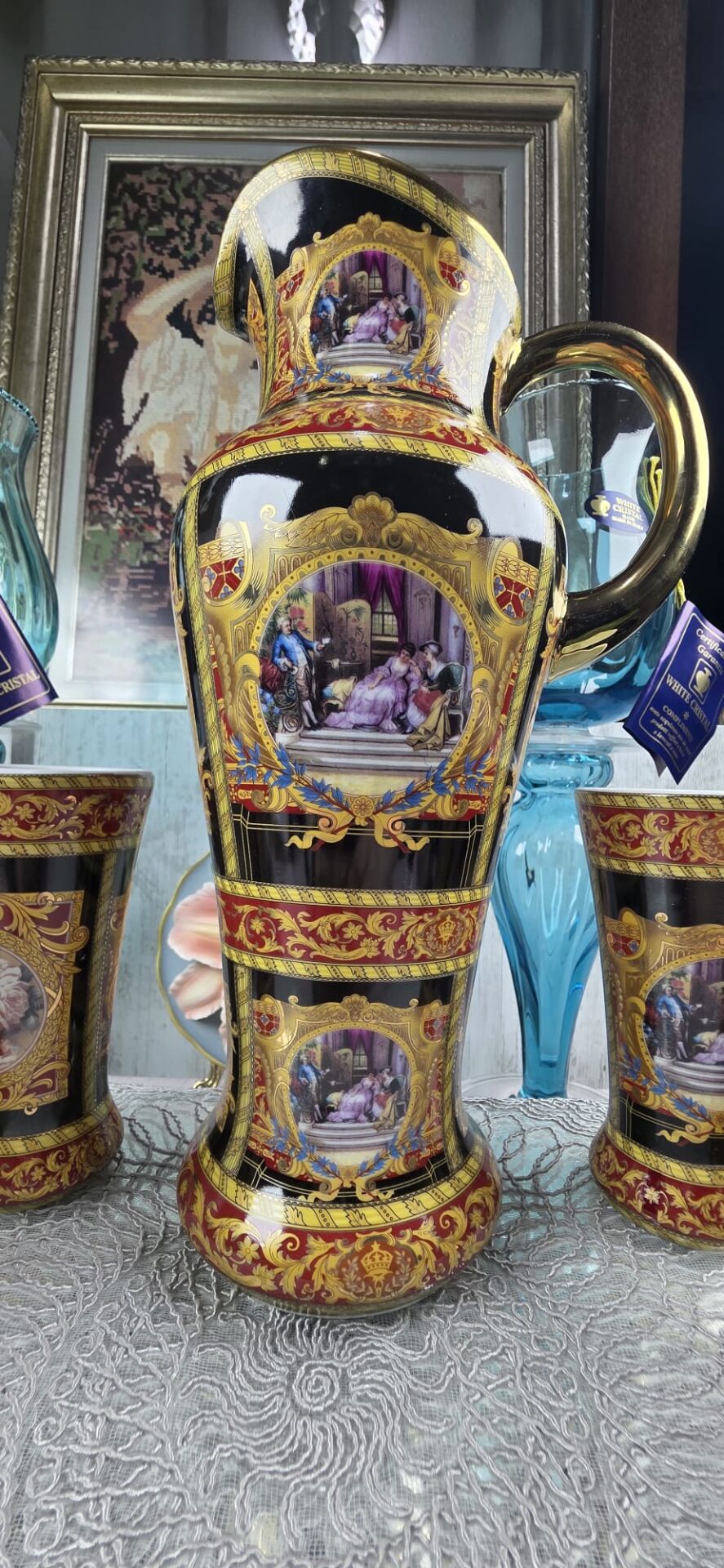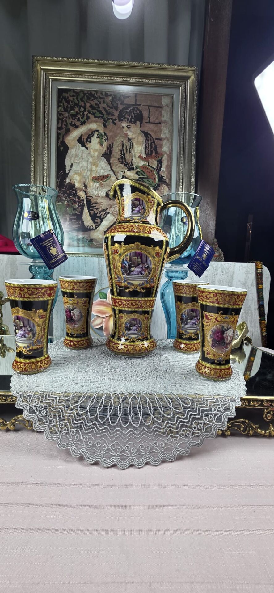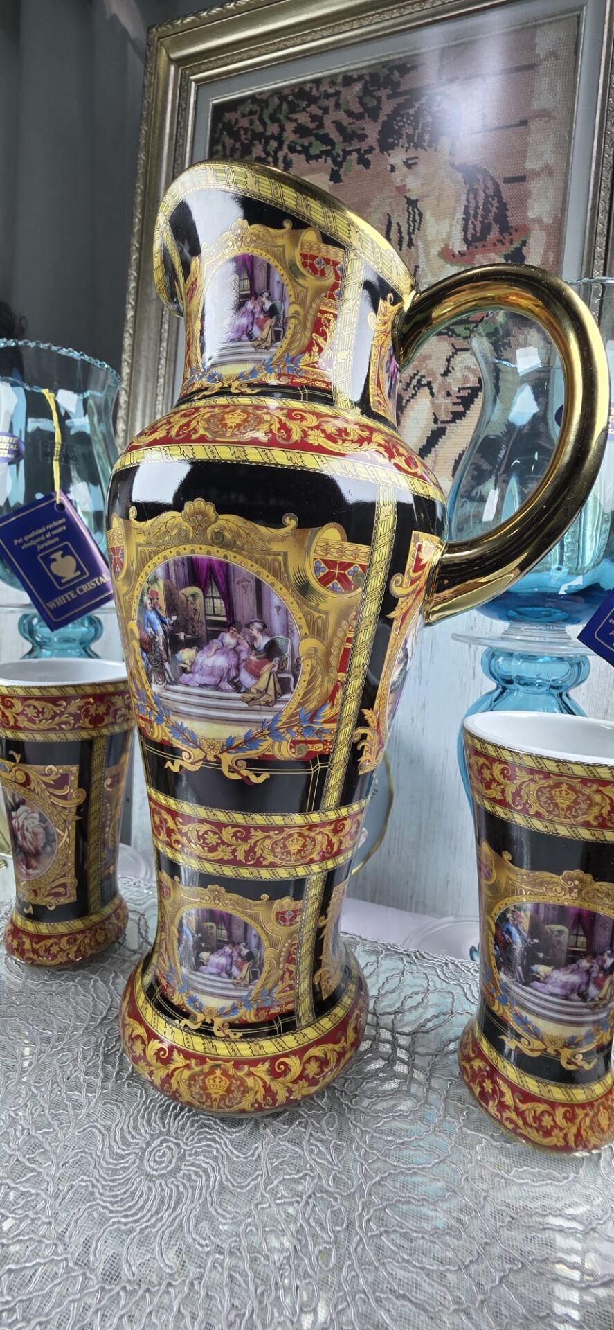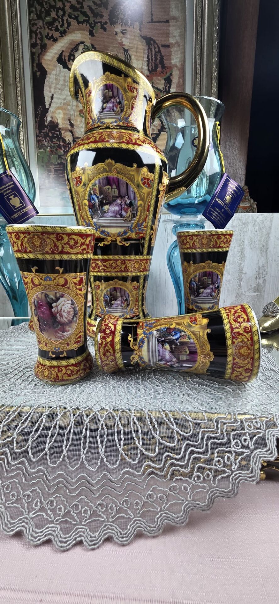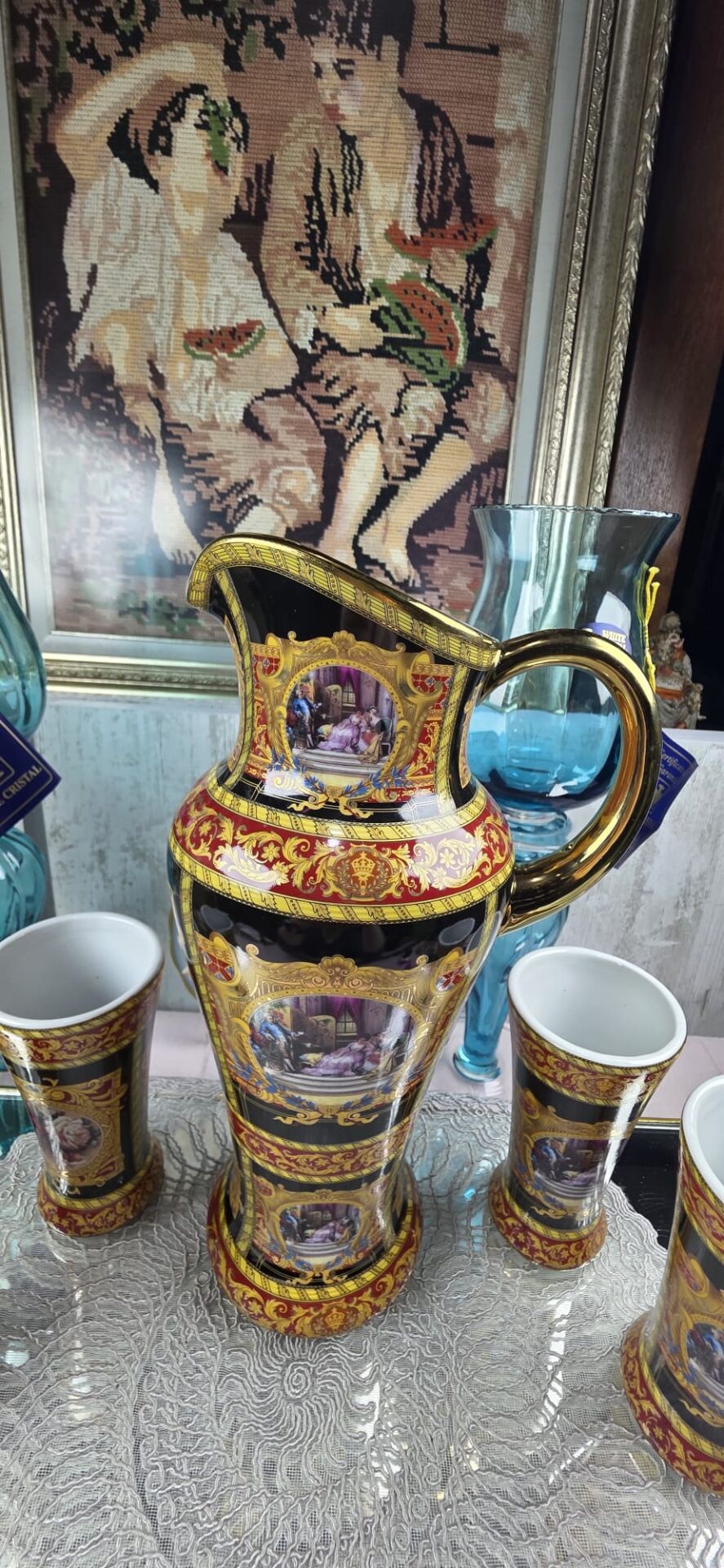 6 adet mazagran ve büyük boy sürahisiyle italyan stil bir takım