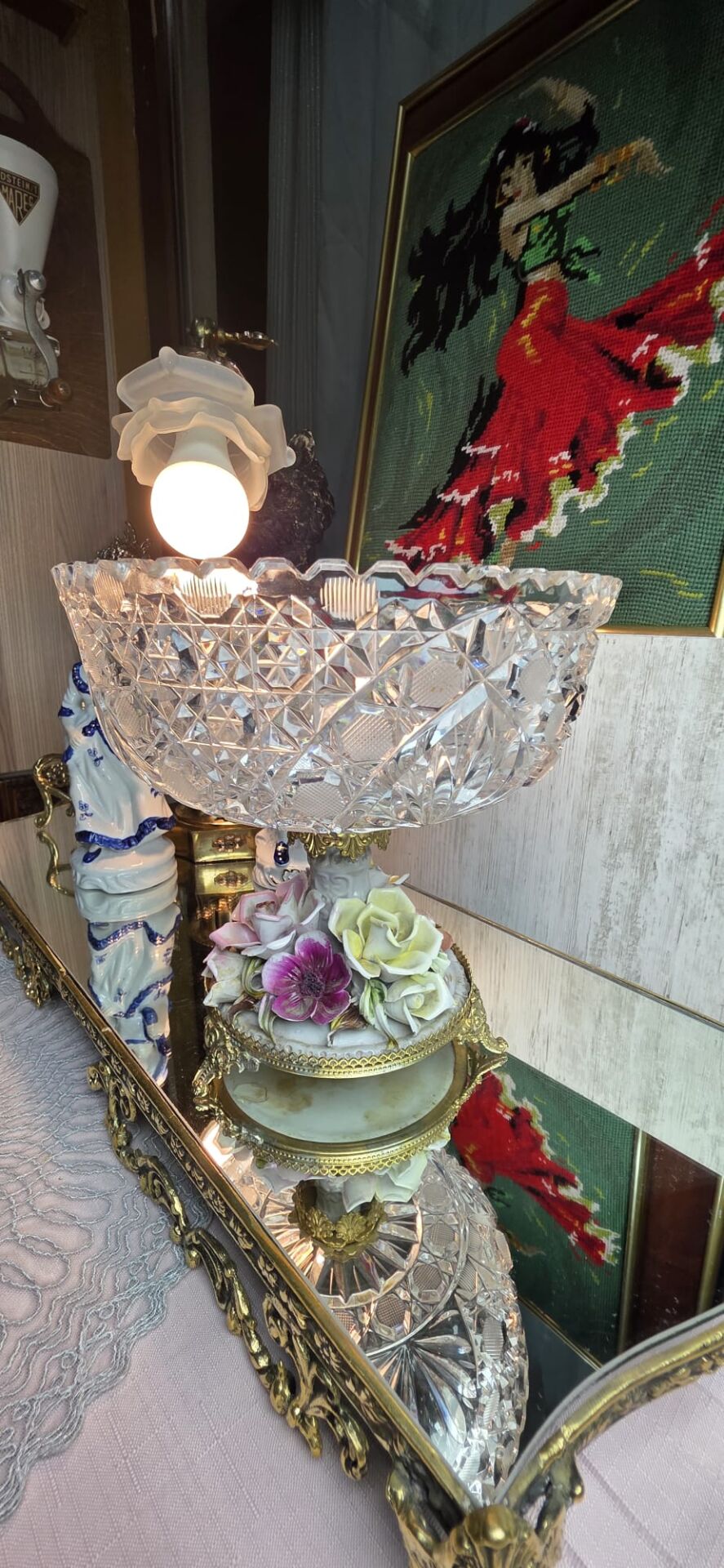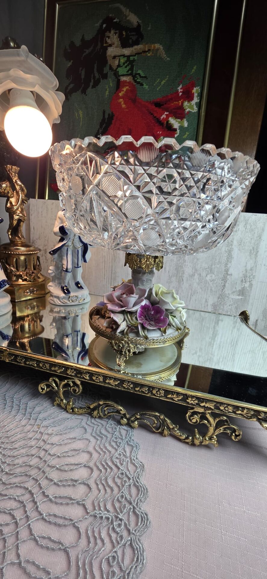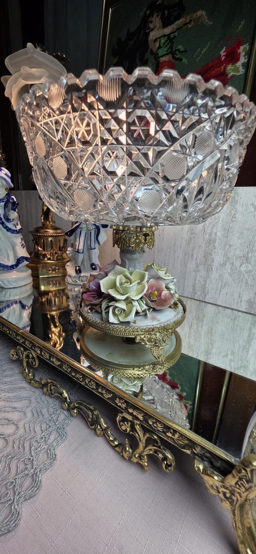 Pirinç Ayaklar Capodimonte çiçekler Kristal aşkı ile birleşince mükemmel bir jardinyer ortaya çıktı...