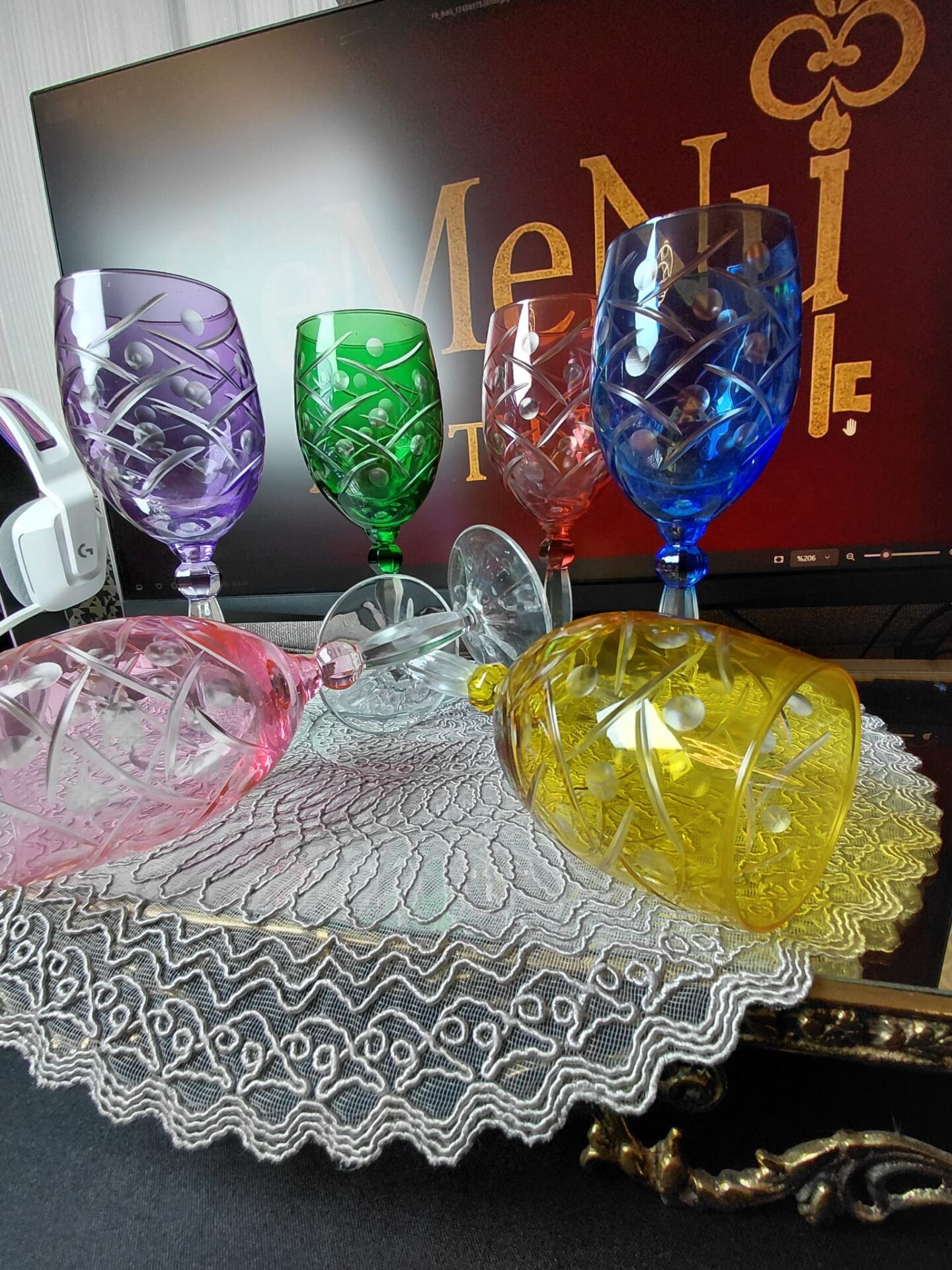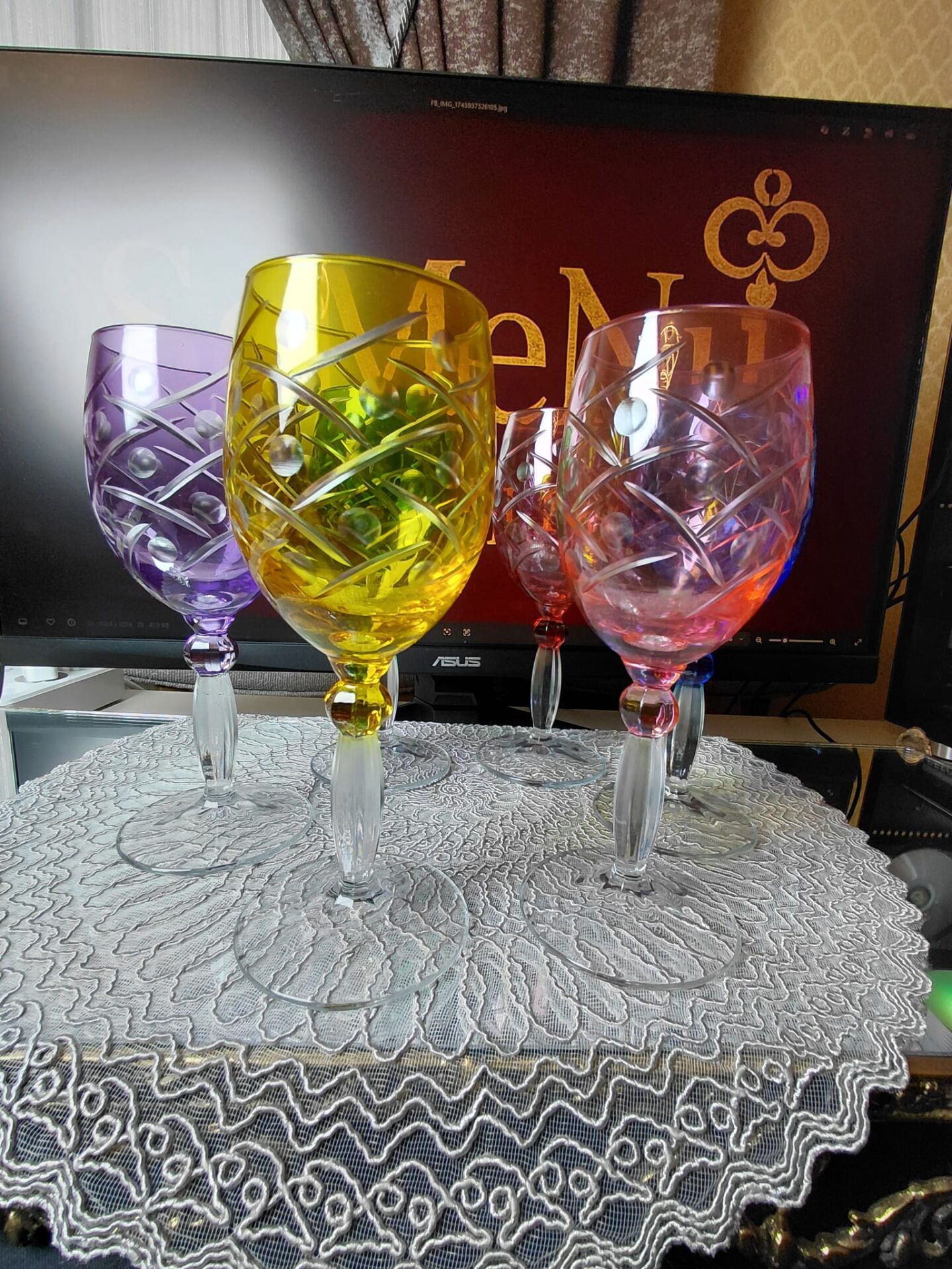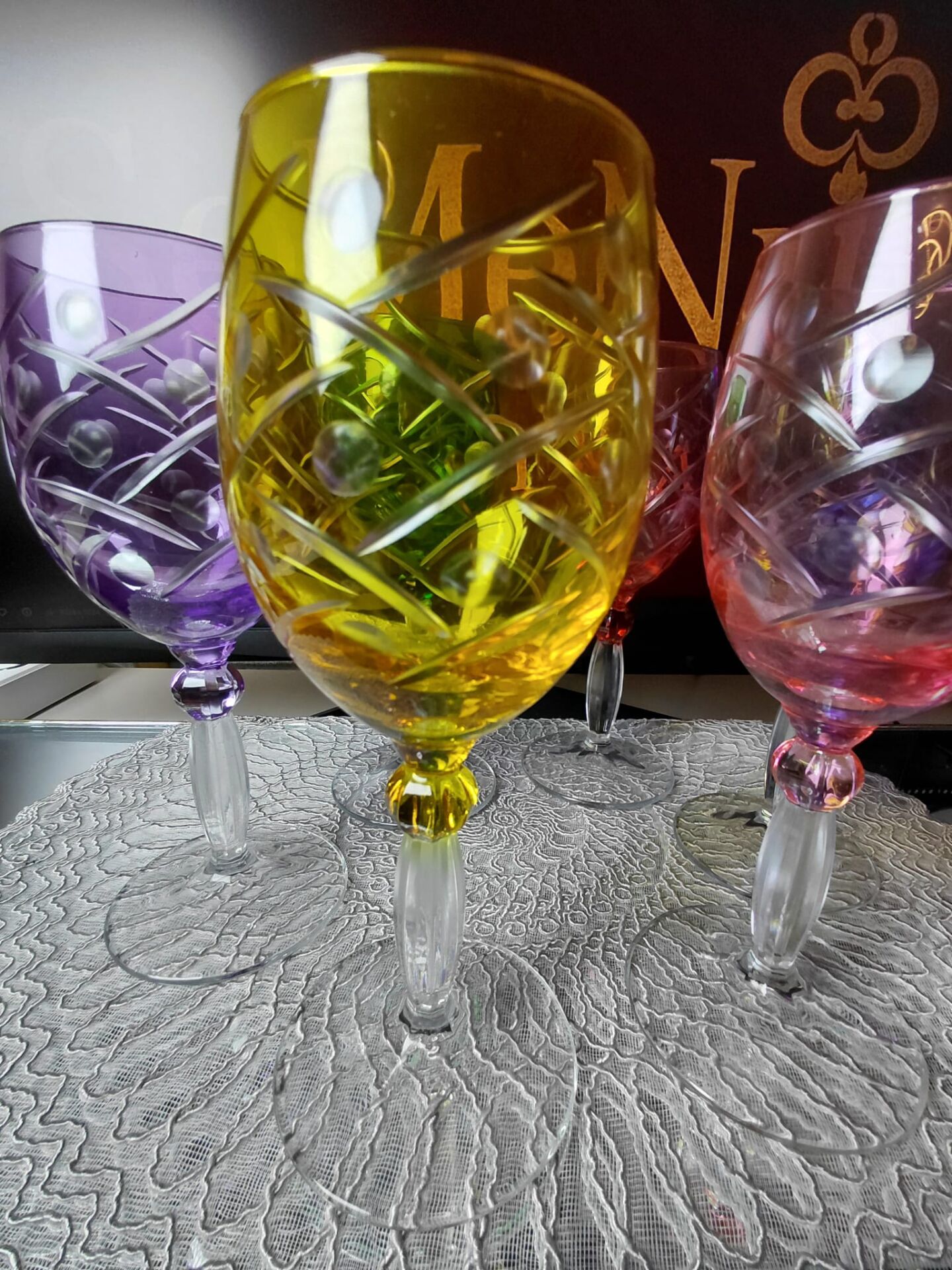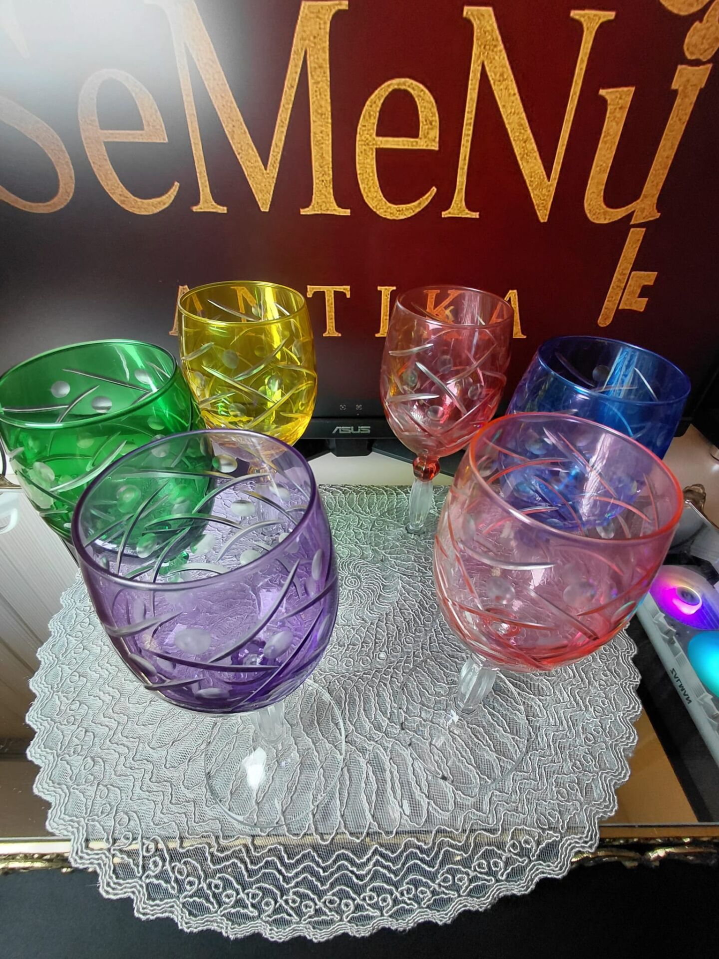 Gökkuşağının Zarafeti: 6'lı Renkli Kesme Kristal Kadeh Seti"