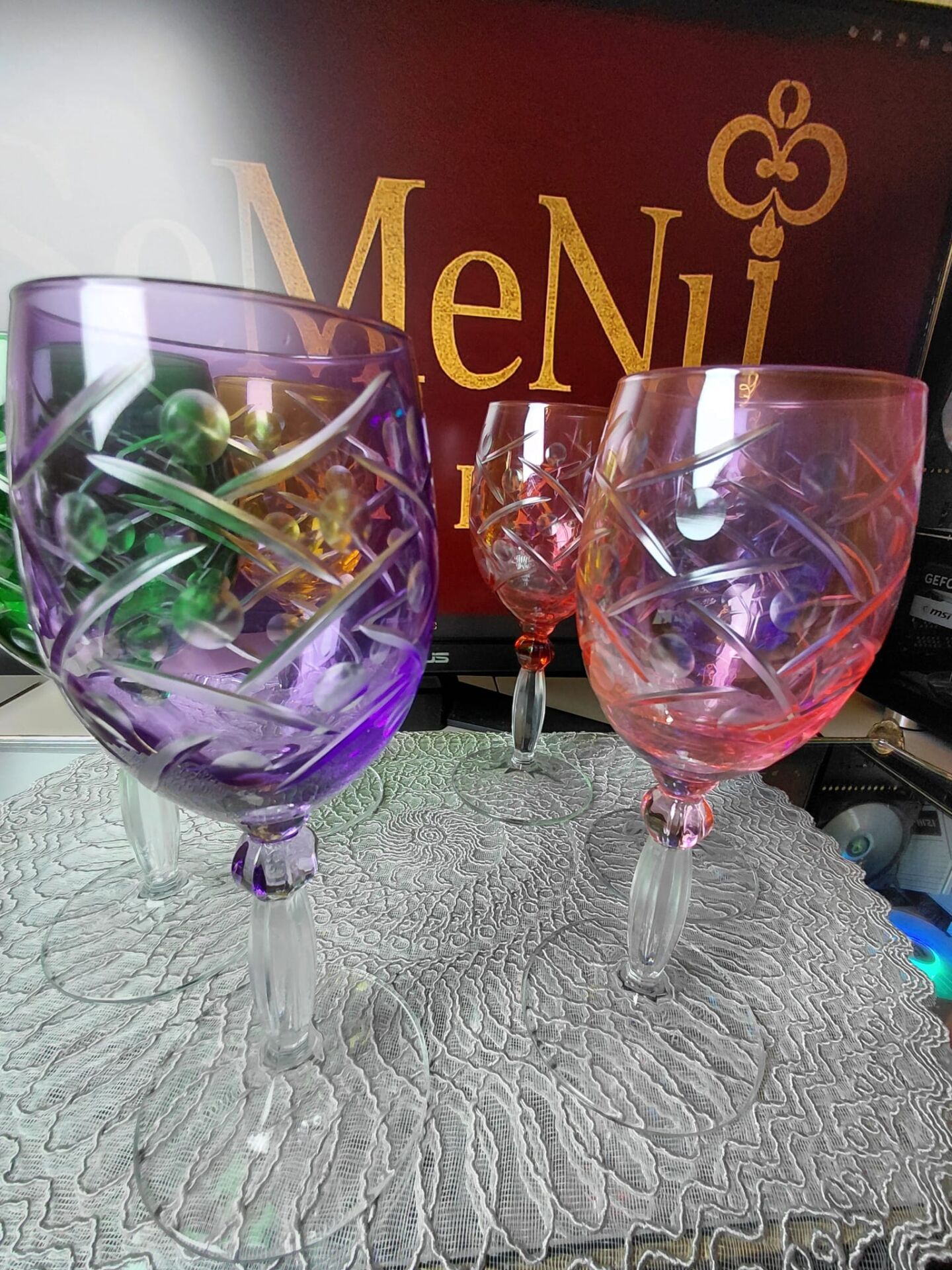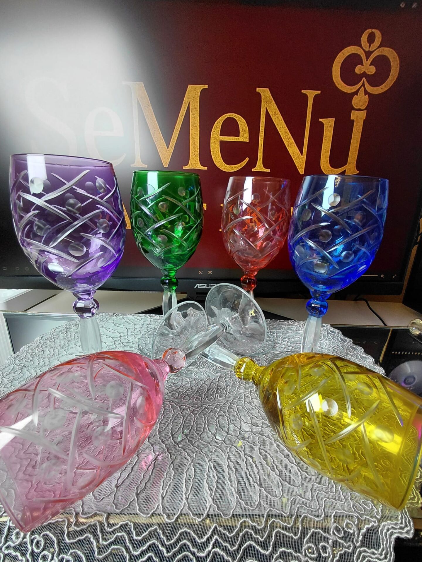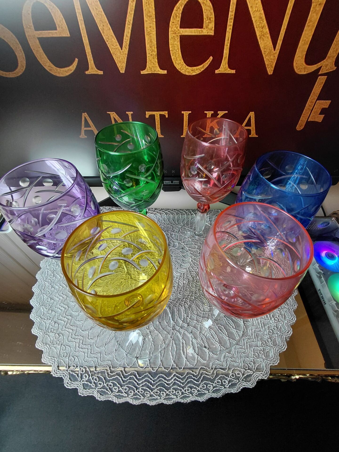 SeMeNu Antika koleksiyonundan, sanat ve zanaatın buluştuğu eşsiz bir parça. Bohemya tarzının en güzel örneklerinden olan bu set, canlı renk geçişleri ve usta işi el kesmesi desenleriyle sofralarınıza veya vitrinlerinize asalet katacak. Işığı mükemmel kıran kristal yapısı ve kusursuz kondisyonuyla hem koleksiyonluk hem de günlük kullanıma uygundur.