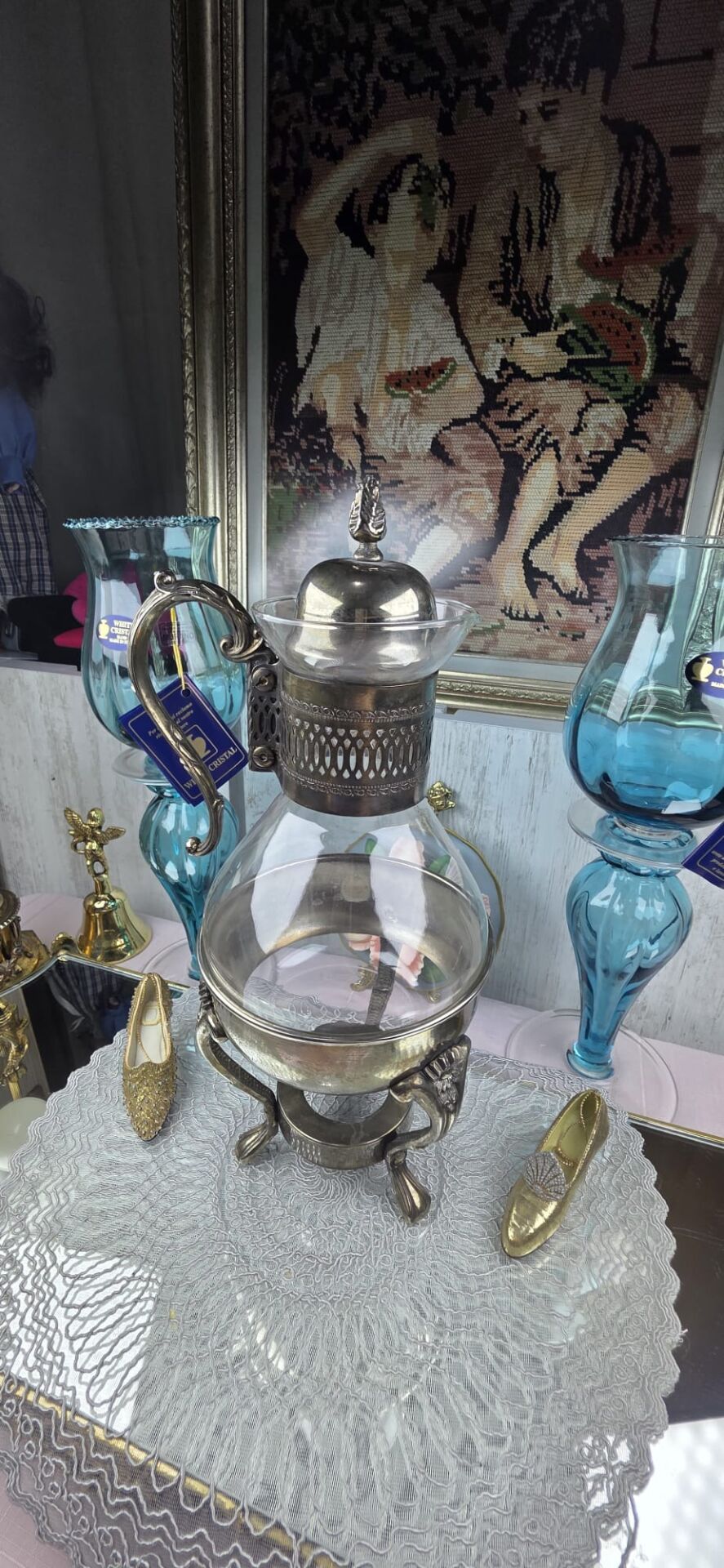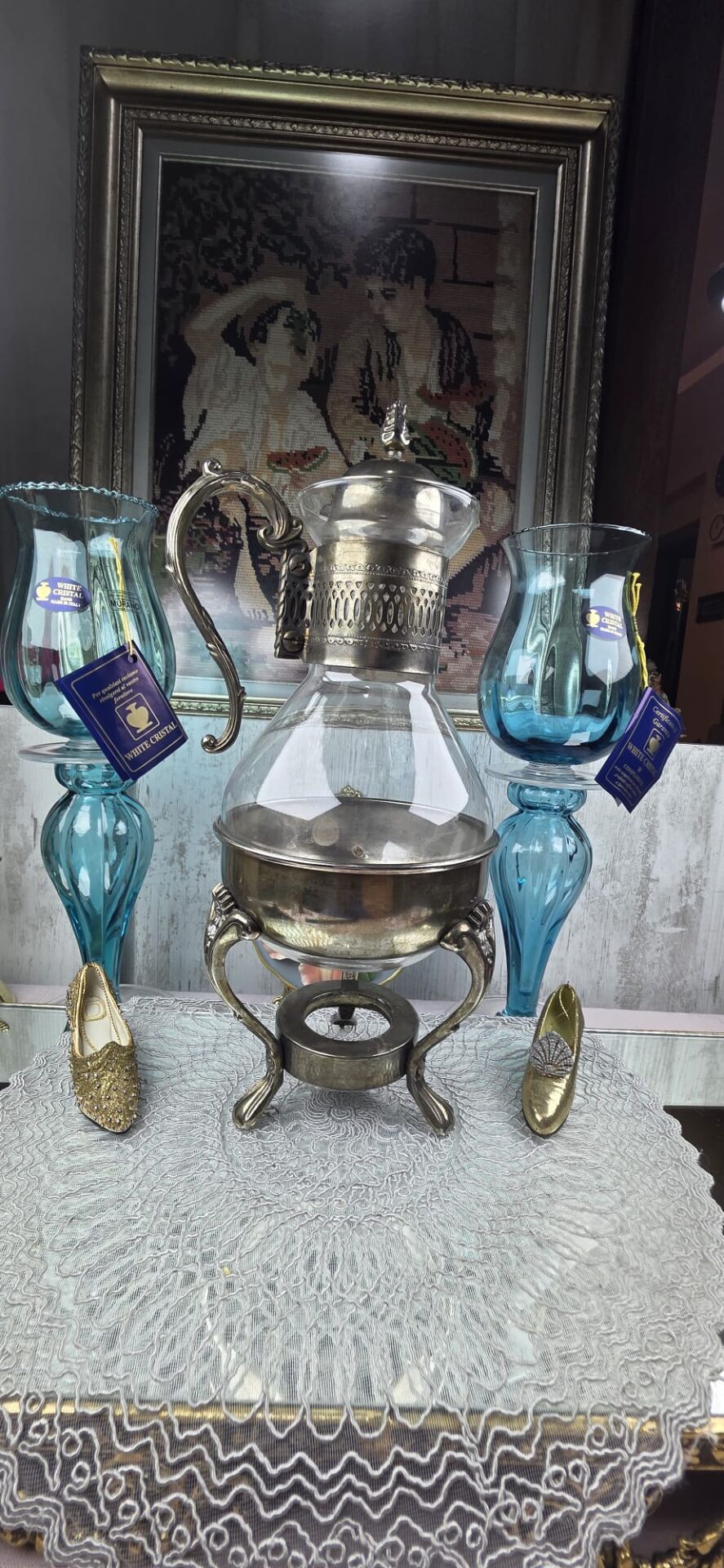 Osmanlı tarzı şerbetlik / ibrik (ısıtıcılı şerbet takımı) olarak bilinen bir dekoratif objedir. Fotoğraftaki detaylara göre hem koleksiyonluk hem de dekoratif amaçla yapılmış sıcak şaraplık olarakta kullanılırdı. Eski dönemlerde Gelin Kalkmaz olarakta bilinen bu semaver obje