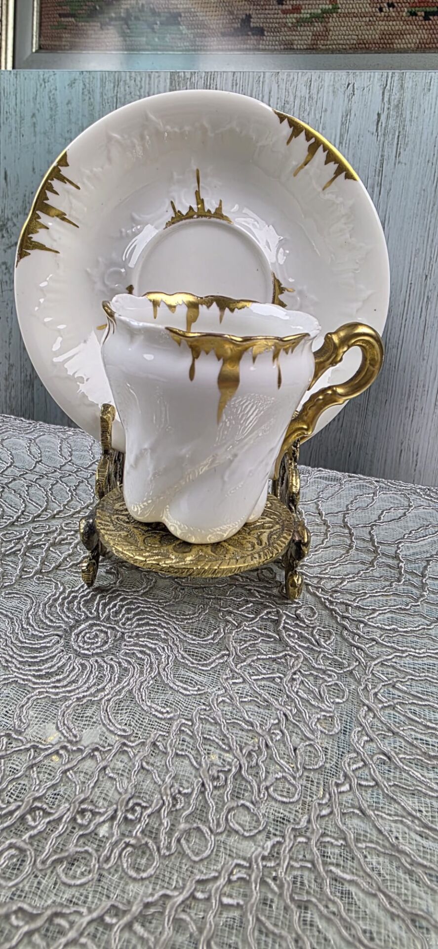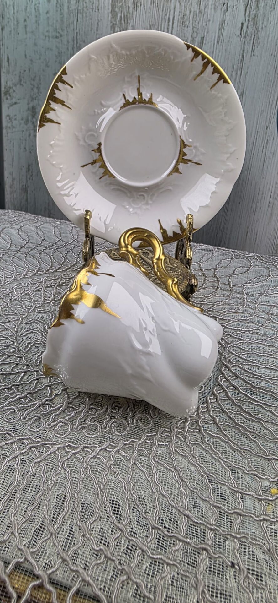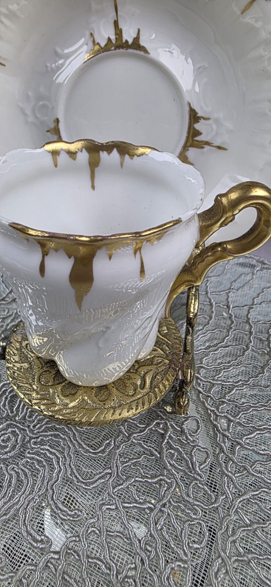 Fransız atölye çalışması olan el yapımı el boyaması özel fincan..