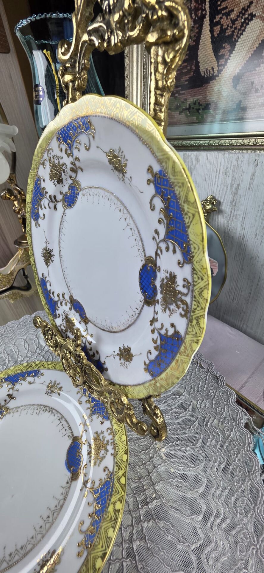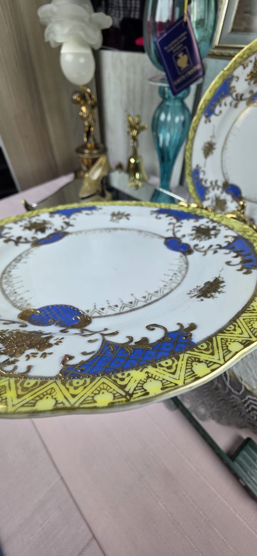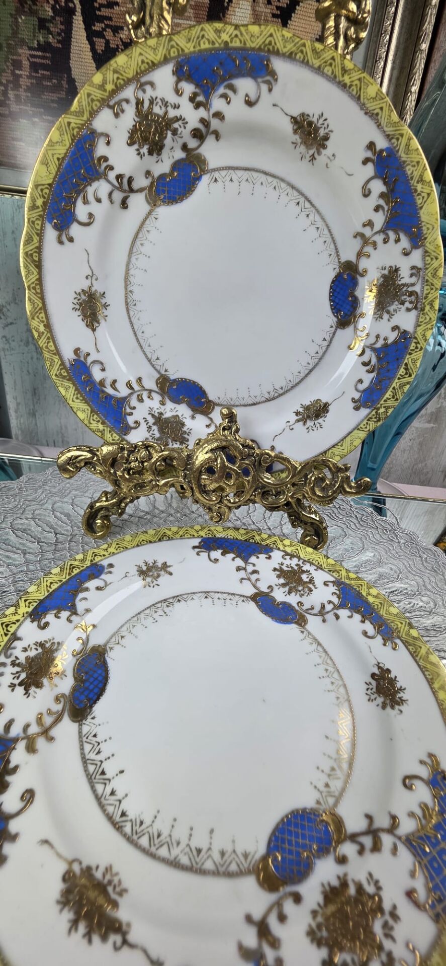 Fransız atölye işi 6 adet pasta tabağı gofreli ve sedefli el yapımı el boyaması koleksiyon tabaklardır.. 21 cm çapındadır