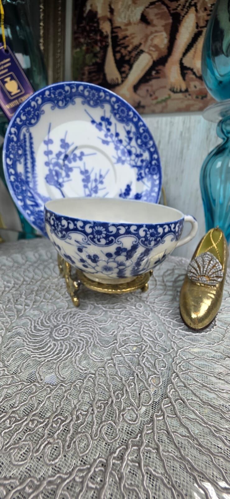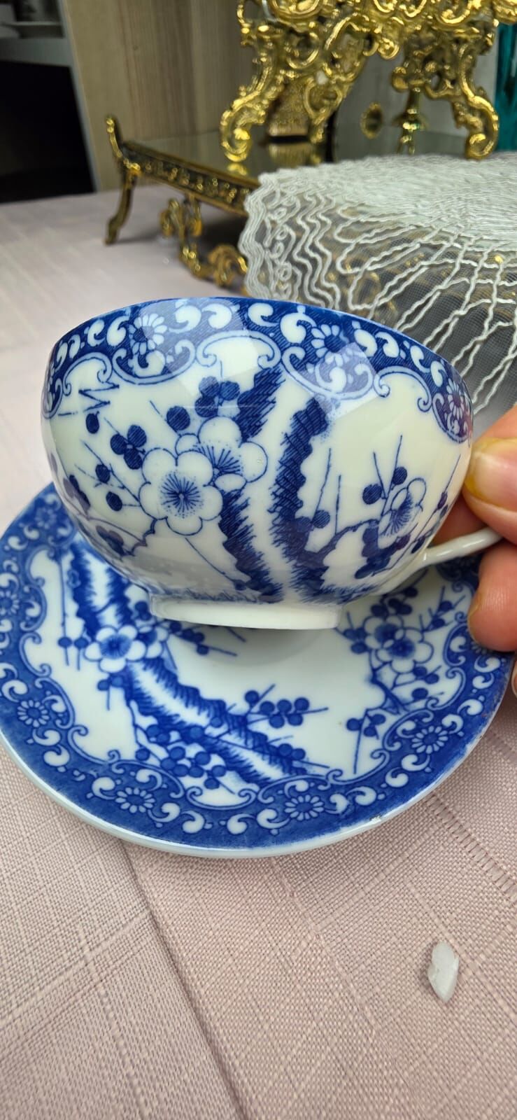 İmport damga özel koleksiyon mavi beyaz incecik çay fincanı Fincan ağız çapı 10 cm Fincan yüksekliği 6 cm Fincan tabağı 14 cm