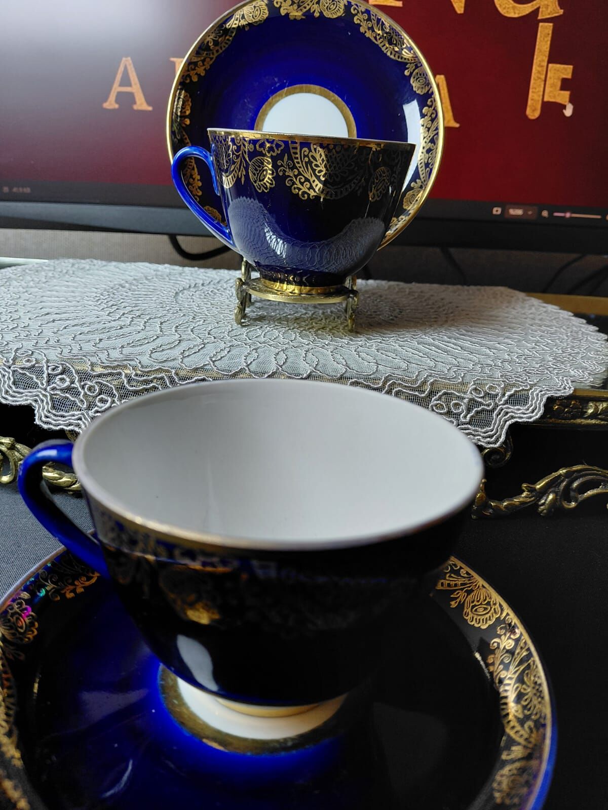 Kondisyon: Fotoğraflardan görüldüğü kadarıyla altın yaldızlarda belirgin bir silinme yok ve kobalt rengi canlılığını koruyor. Bu, ürünün değerini artıran bir unsurdur.