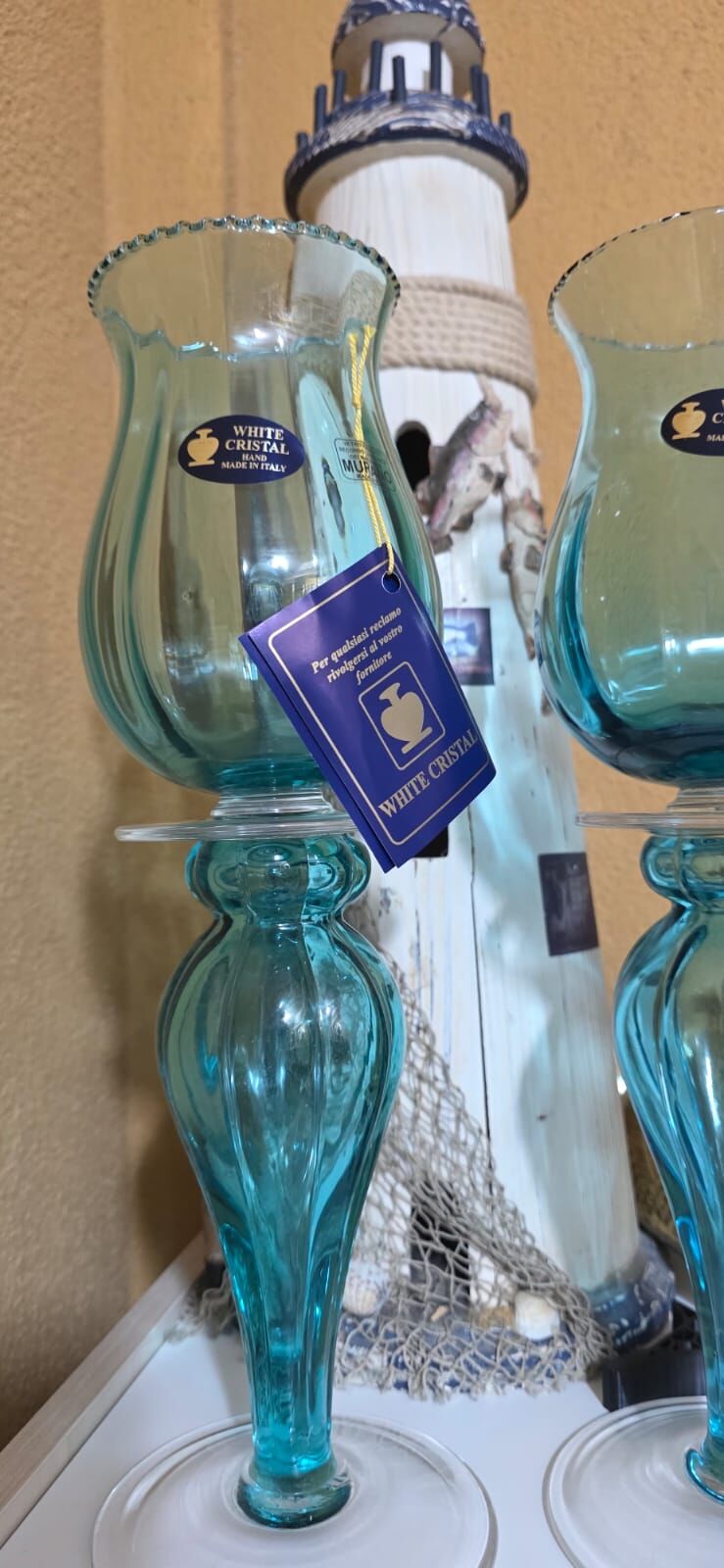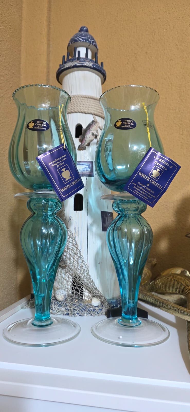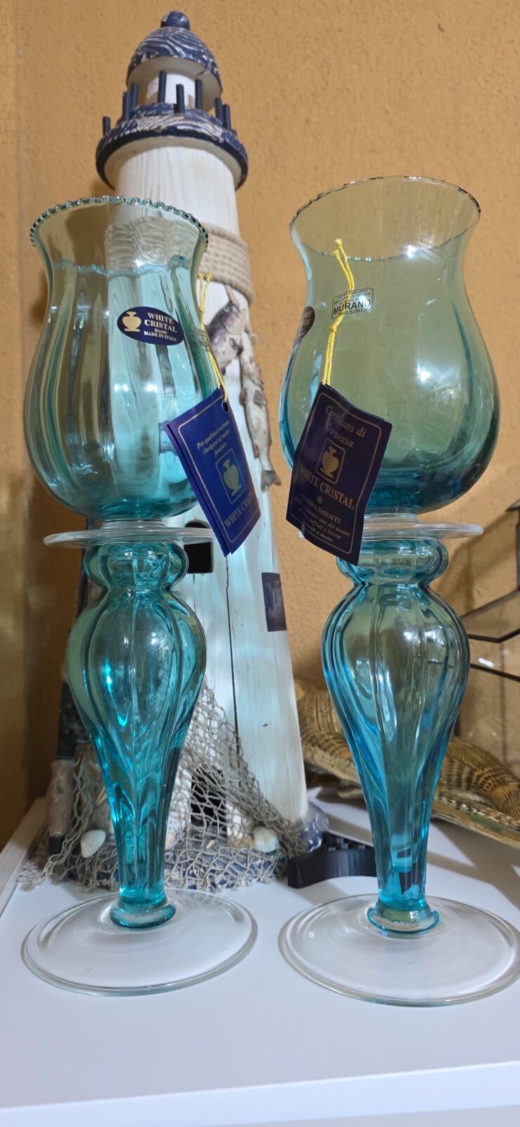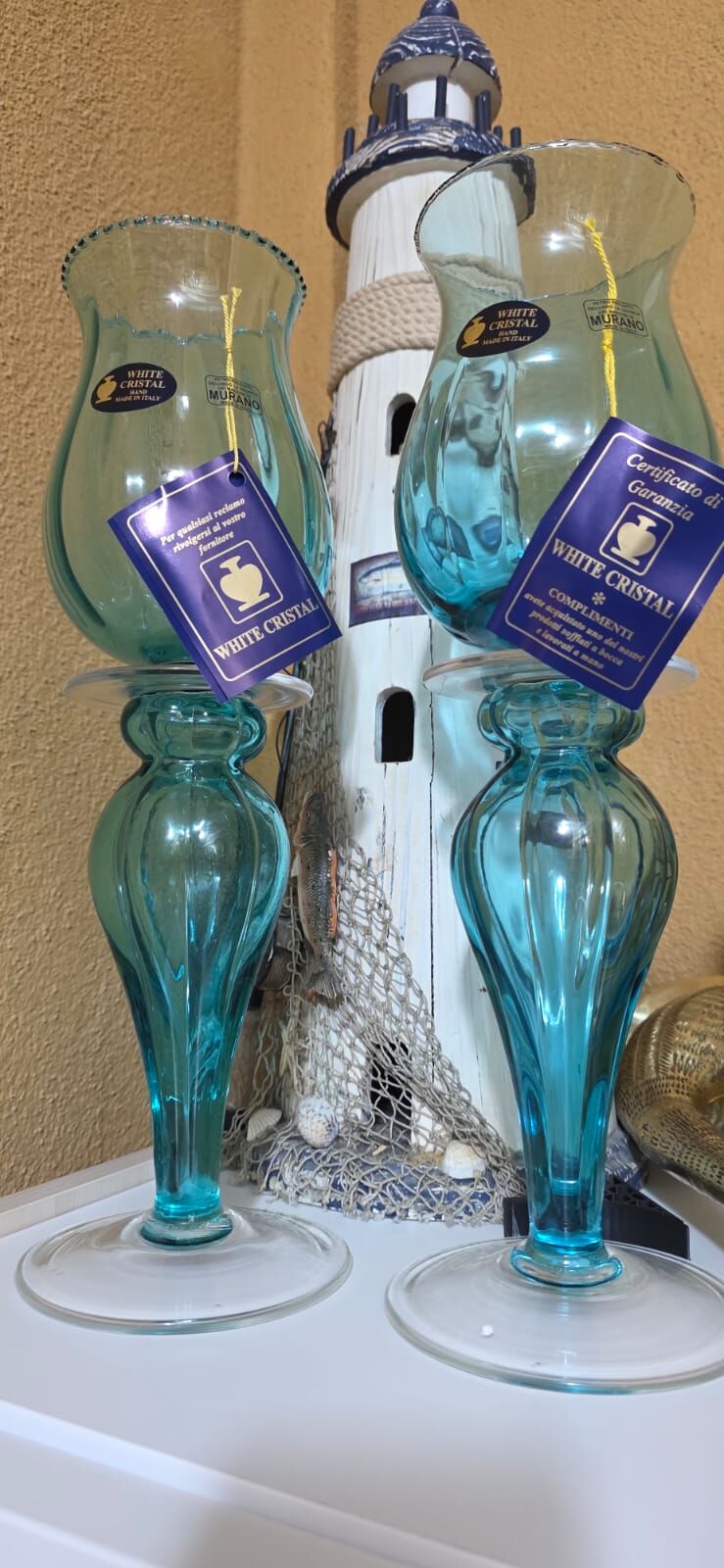 İtalyan Damgalı White Cristal Murano Şamdanlar 38 cm yüksekliktedir...