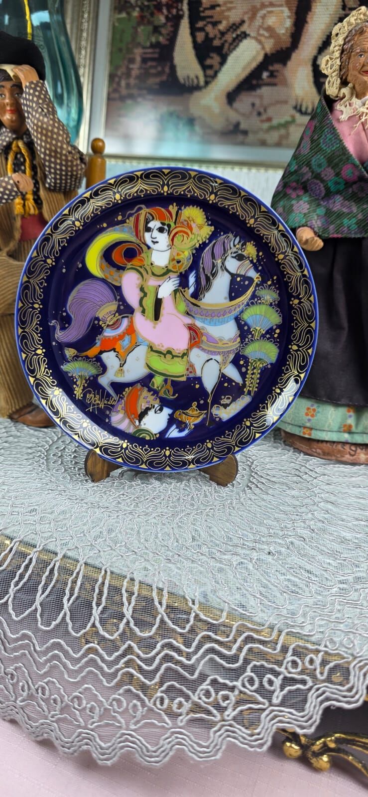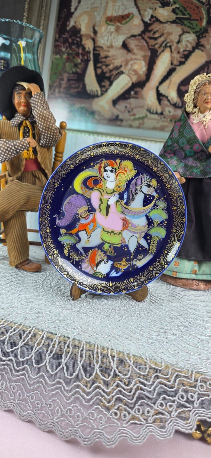 Özetle: Bu tabak, Rosenthal markasının Danimarkalı sanatçı Björn Wiinblad tarafından tasarlanan, popüler "Aladdin ve Sihirli Lamba" serisine ait, 11 numaralı sınırsız baskı bir koleksiyon tabağıdır.