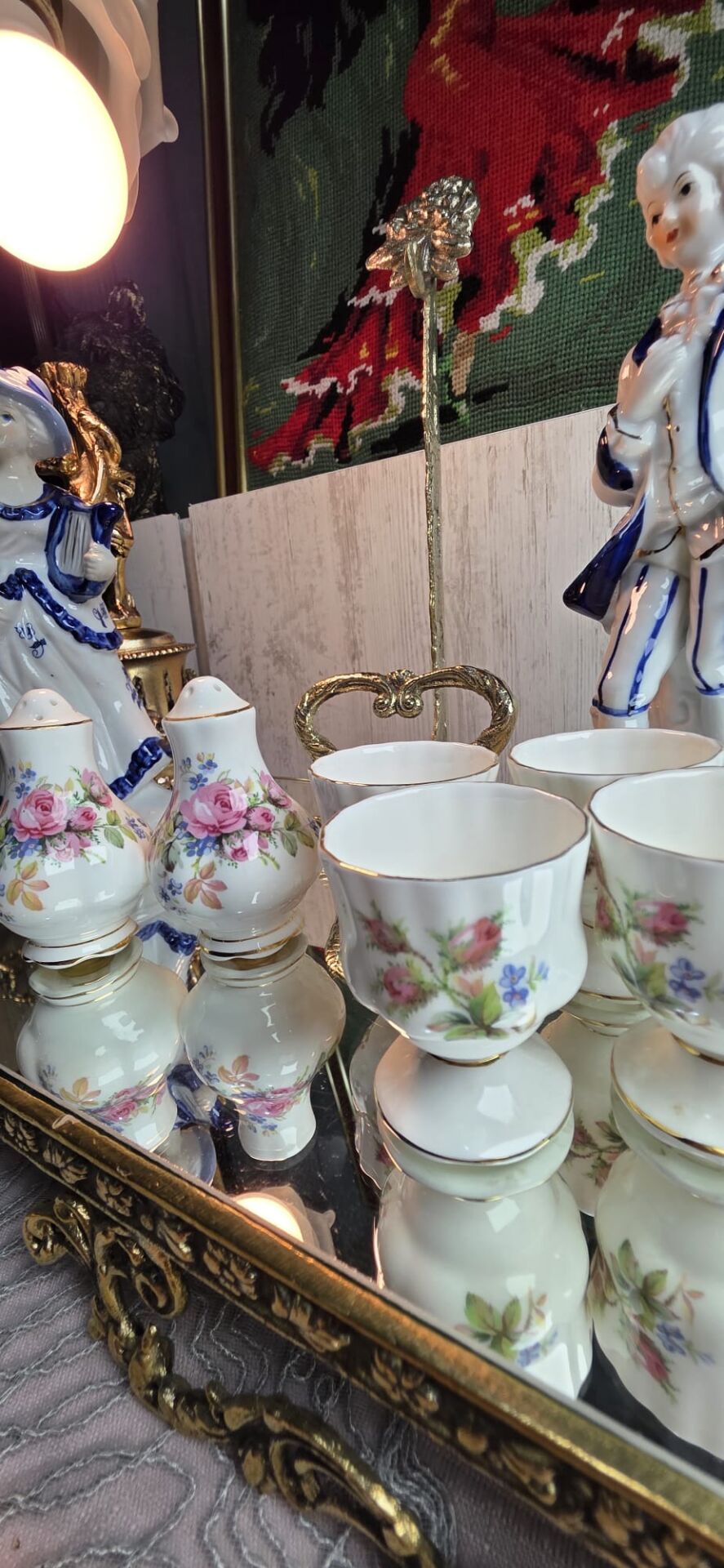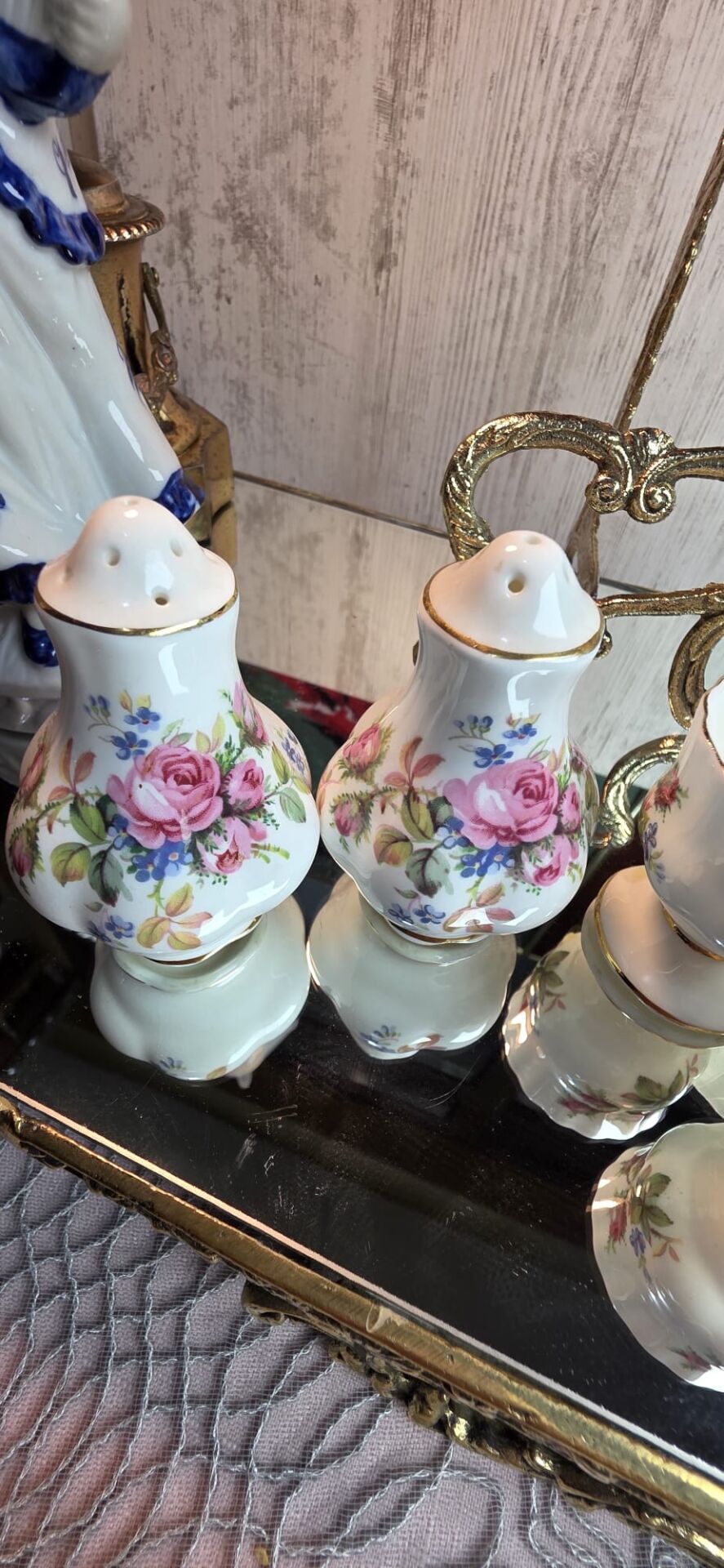Royal Albert Moss Rose Tuzluk Biberlik ve 4 adet yumurtalık...