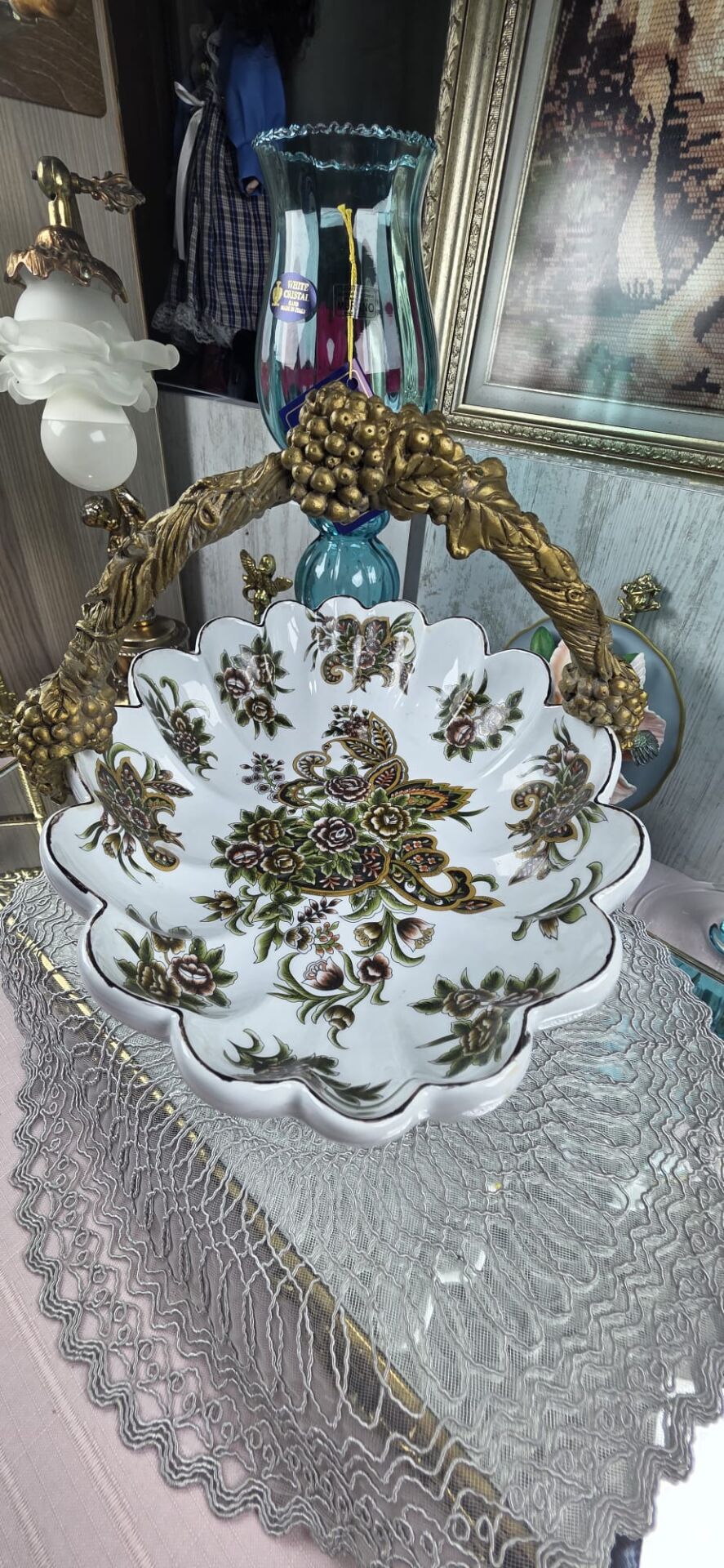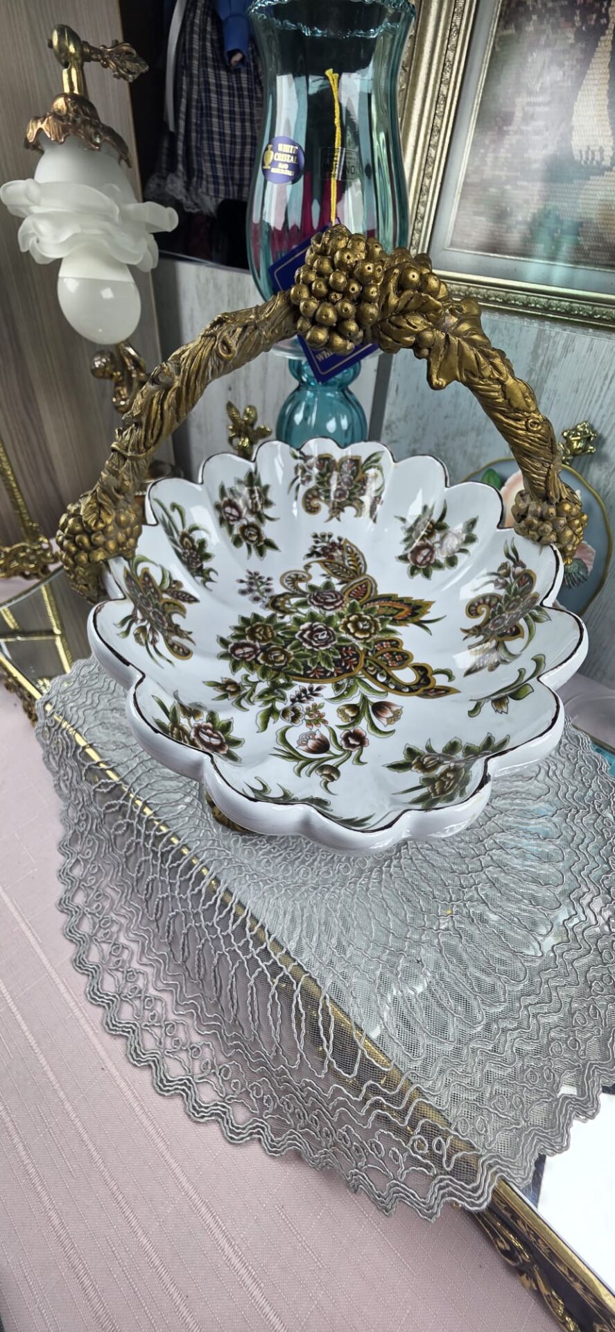 Tamamen el boyaması sap ve ayak kısımları bakalın malzemeden yapılmış sunumluk...30 cm x 23 cm x 26 cm büyük boy sunumluk..